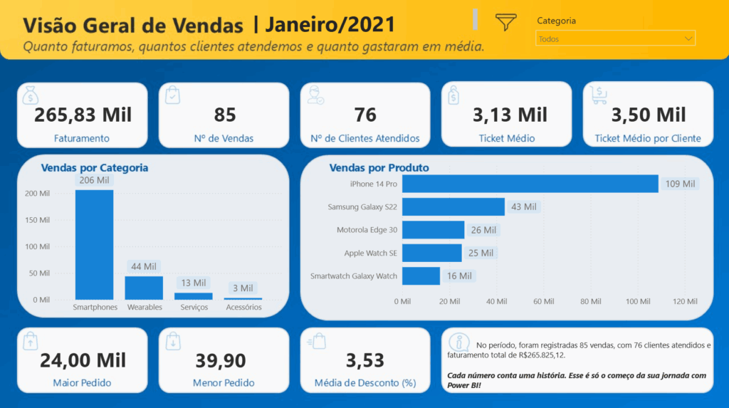Você vai sair com seu primeiro painel completo e funcional no Power BI, entendendo exatamente o que fez e por quê.